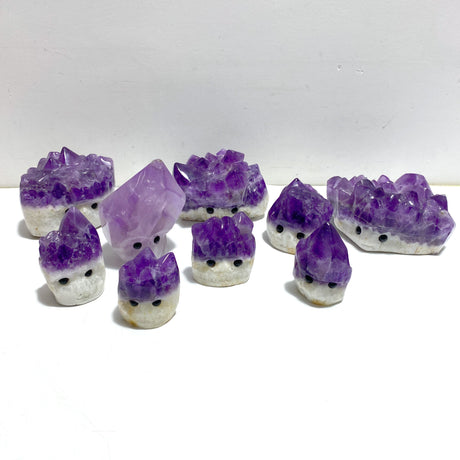 9 Pieces Polished Amethyst Teeth Cluster Groot Carving
