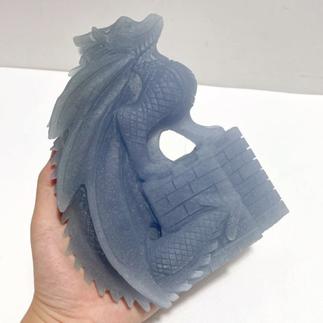 2 Pieces Beautiful Blue Angelite Flying Dragon Castle Carving