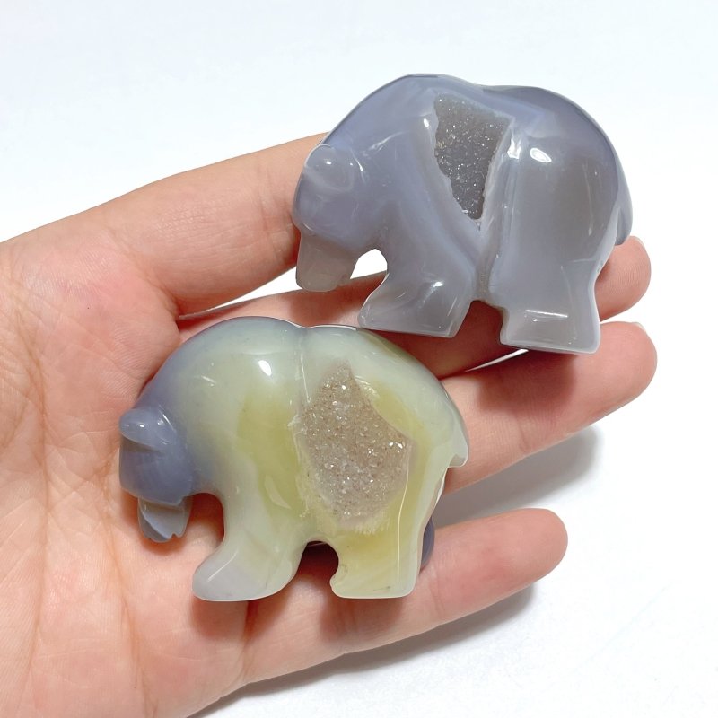 12 Pieces Small Geode Druzy Agate Bear Carving | Canada