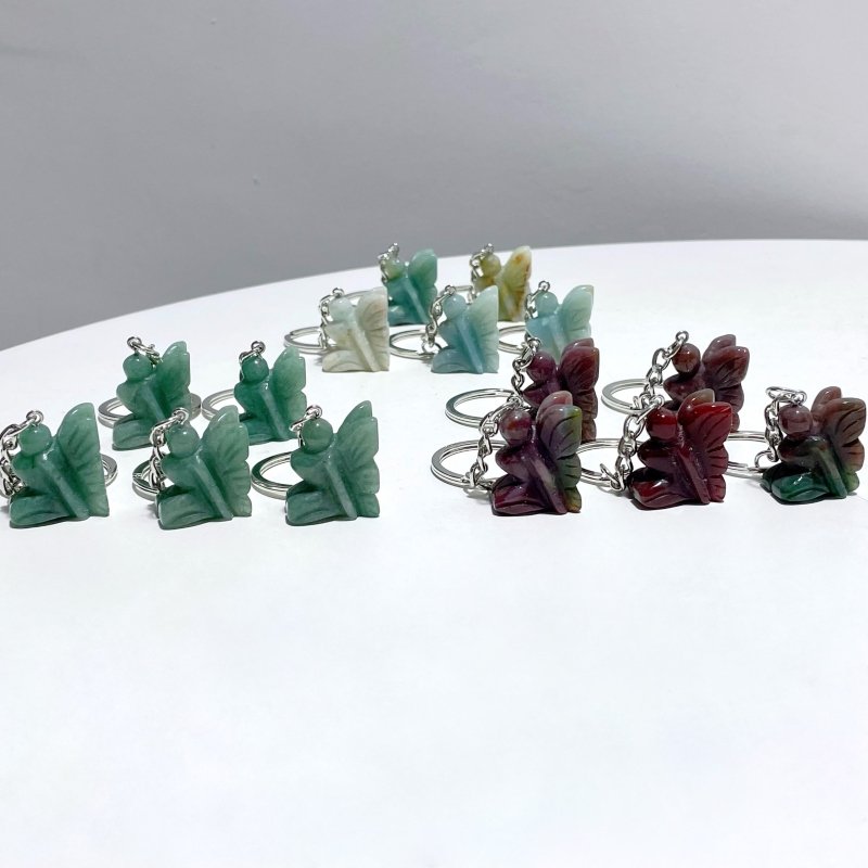 Moss Agate Butterfly Fairy Keychain Wholesale Caribbean Calcite Green Aventurine | Canada