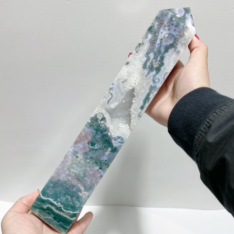 4 Pieces Large Geode Druzy Moss Agate Four-Sided Points | Canada