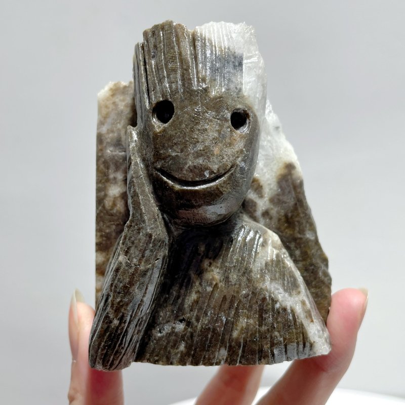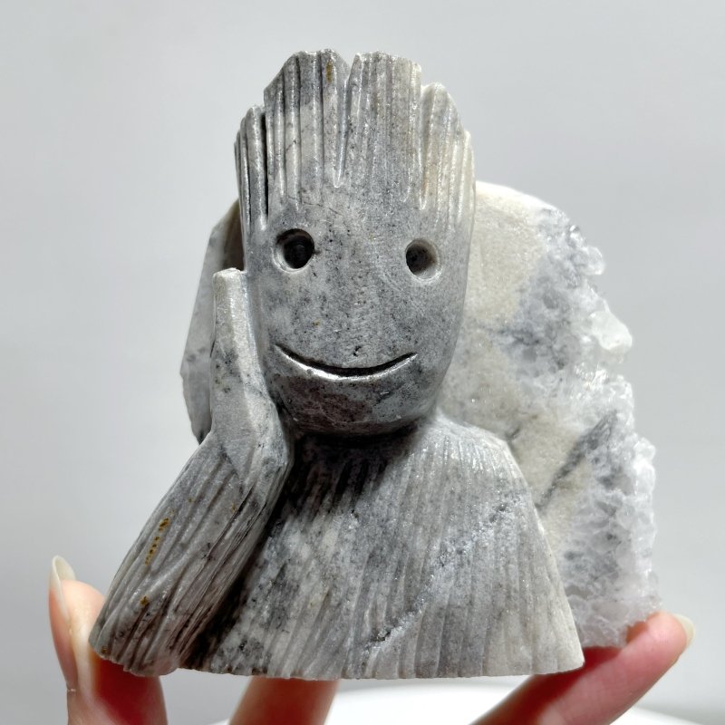 Note: There's a layer of resin on groot's face side to prevent the stone from cracking.