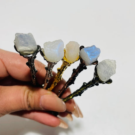 5 Colors Coffee Spoon With Raw Sri Lanka Moonstone Stone Wholesale