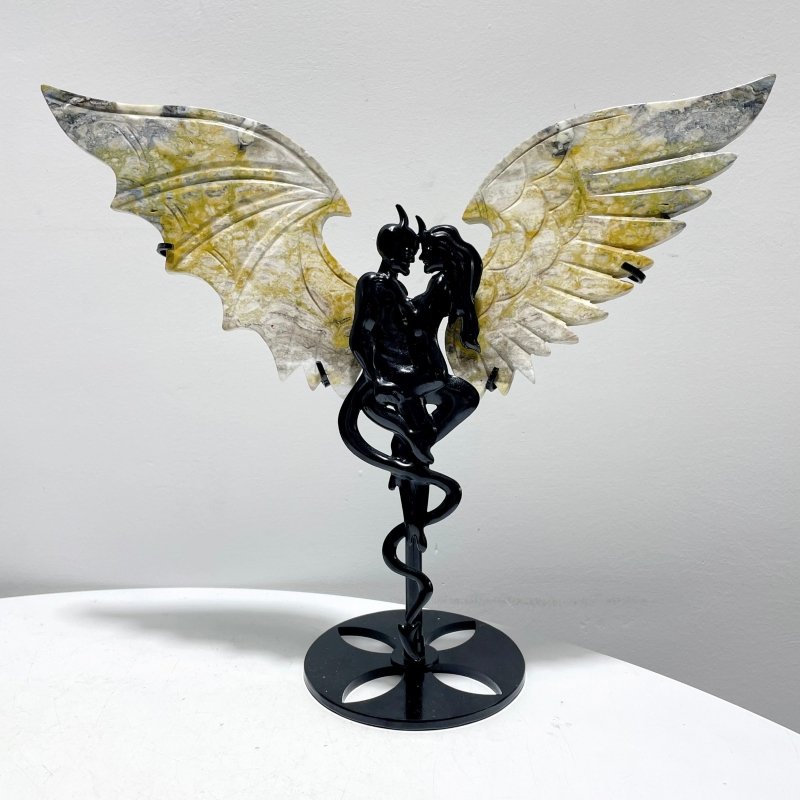 3 Pairs Demon And Angel Wing Carving With Stand Lepidolite Pyrite Crazy Agate | Canada