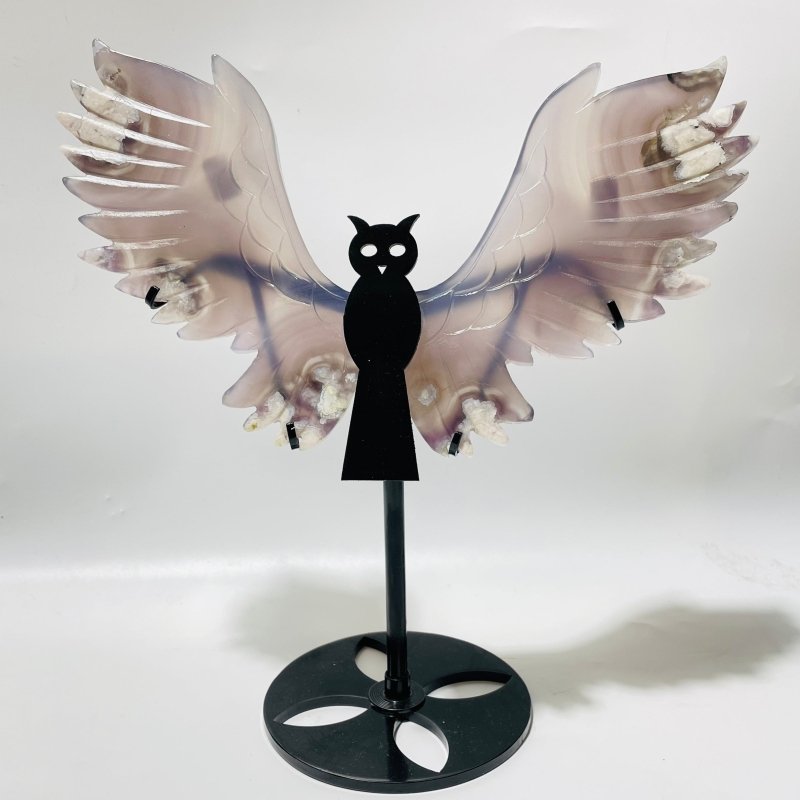 2 Pairs Sakura Flower Agate Owl Wing Carving With Stand | Canada