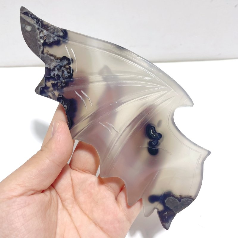 Unique Volcano Agate Demon And Angel Wing Carving With Stand (UV-Reactive) | Canada