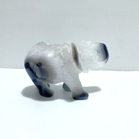 Beautiful Geode Agate Druzy Elephant Animal Carving #A02