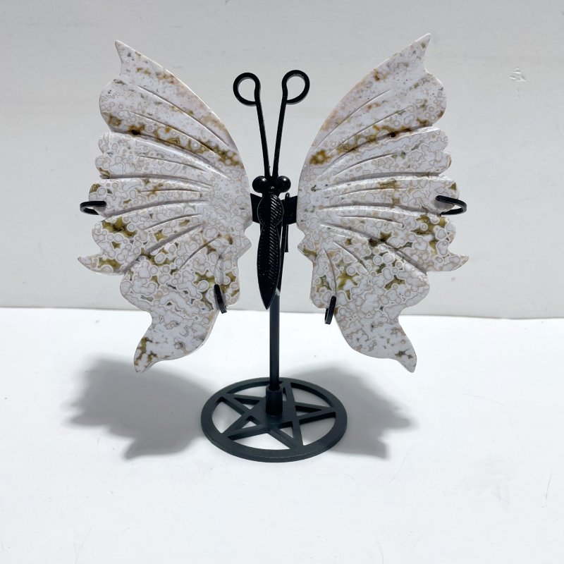 3 Pairs 8th Vein Ocean Jasper Butterfly Wing Carving With Stand #3 | Canada