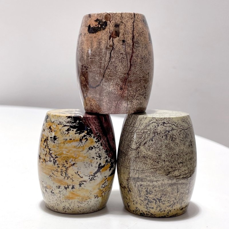 Dendritic Sage Jasper Tambour Carving Wholesale | Canada