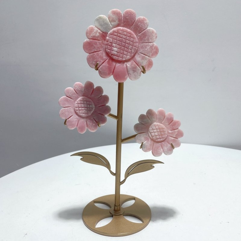 3 Pieces Unique Sunflower Carving With Stand Fire Quartz Fluorite Pink Opal#2 | Canada