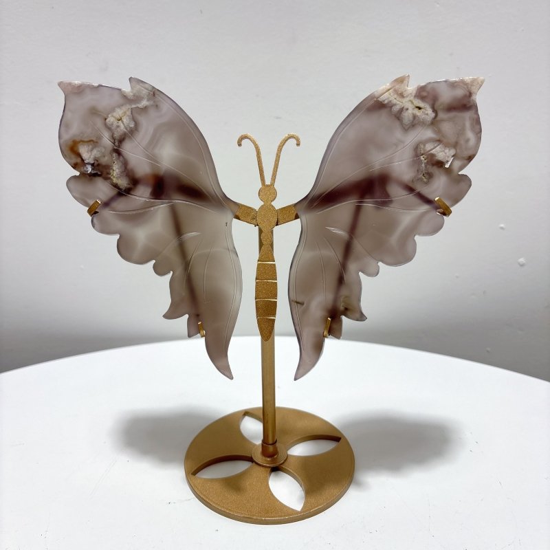 2 Pairs Ruby Zoisite&Black Sakura Agate Symmetry Butterfly Wing With Stand | Canada