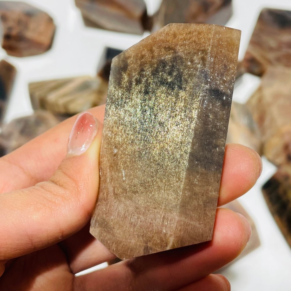 We sell our black rainbow sun stone in lots that are 18pcs, you will get the same of stones as in the photo and video.
