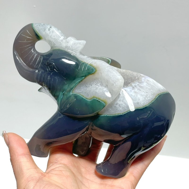 Beautiful Amethyst Mixed Geode Agate Druzy Elephant Animal Carving #A04 | Canada