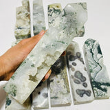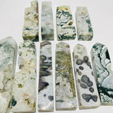 We sell our moss agate druzy four-sided tower in lots that are 10pcs,you will get the same of stones as in the photo and video.