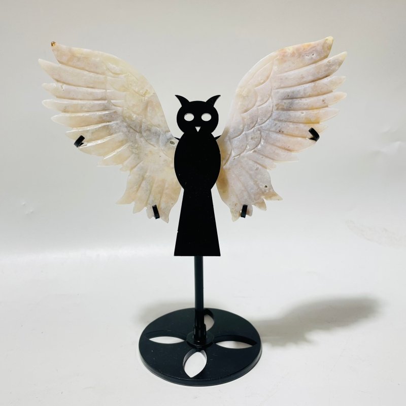 2 Pairs Sakura Flower Agate Small Owl Wing Carving With Stand | Canada